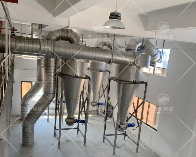 近日,東莞萬川環保公司順利完成廣東凱聞生物科技有限公司食品工廠粉塵治理工程,針對此項目,萬川環保經過深入調研考察,設計了一套滿足衛生要求的食品級除塵系統,食品廠除塵系統竣工運行后,得到了企業的充分認可。